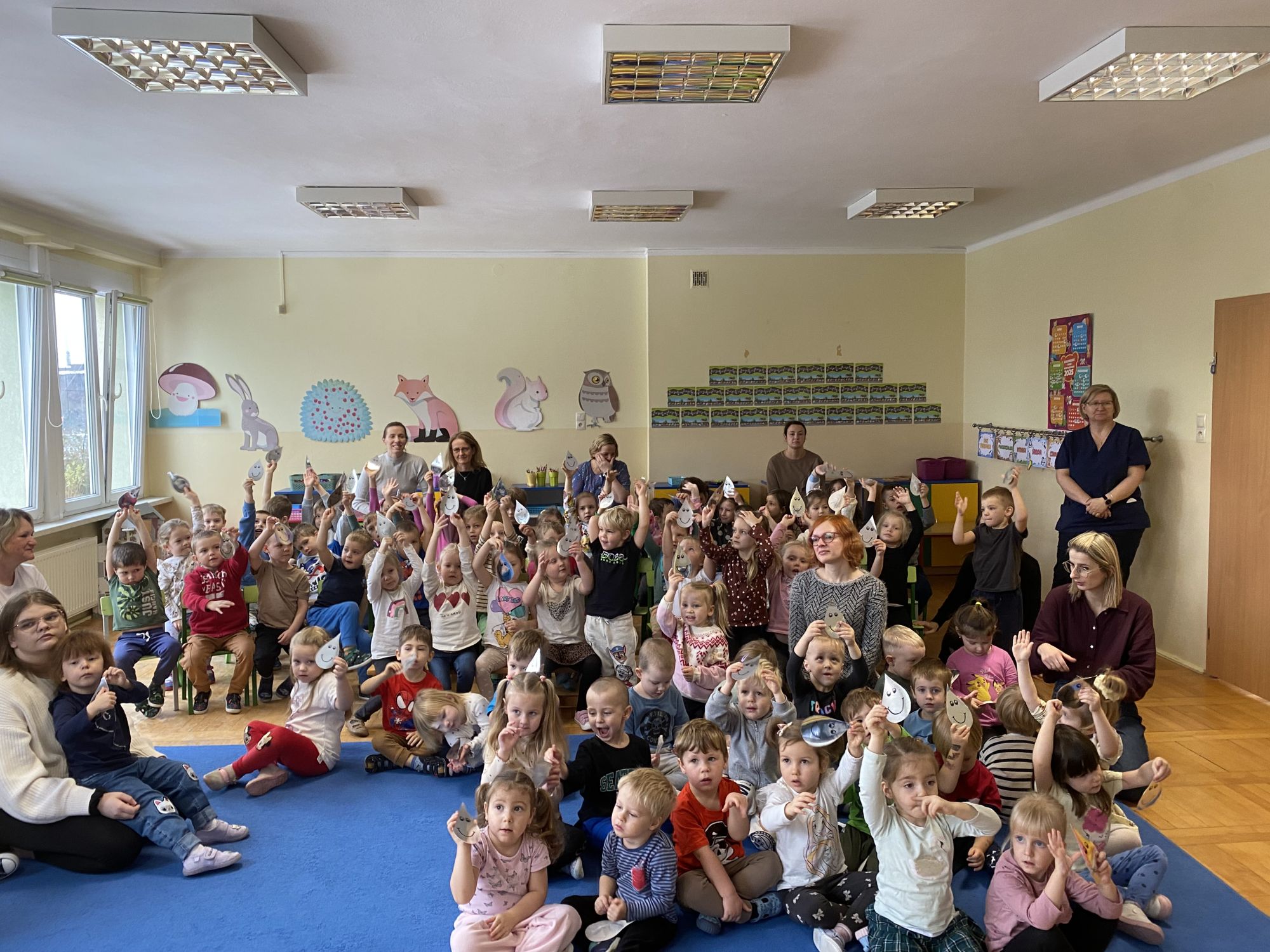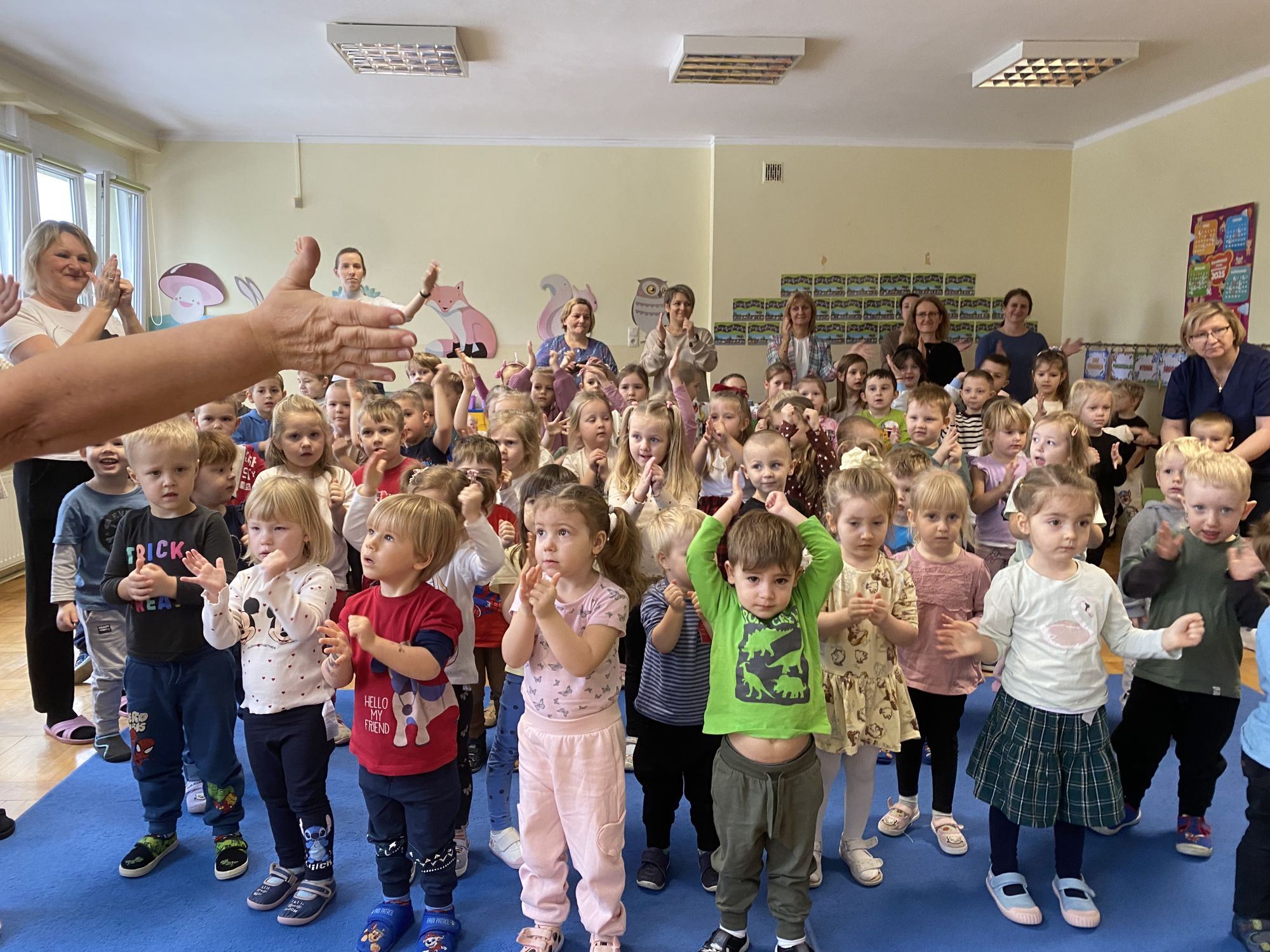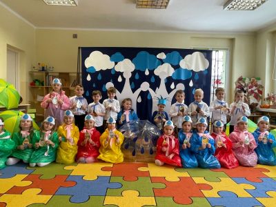 Na zakończenie każde dziecko otrzymało srebrną kropelkę z ukrytą słodką niespodzianką od samego Deszczowego Króla. To wyjątkowe spotkanie zwieńczyła wspólna zabawa ruchowa, w której udział wzięli wszyscy uczestnicy.