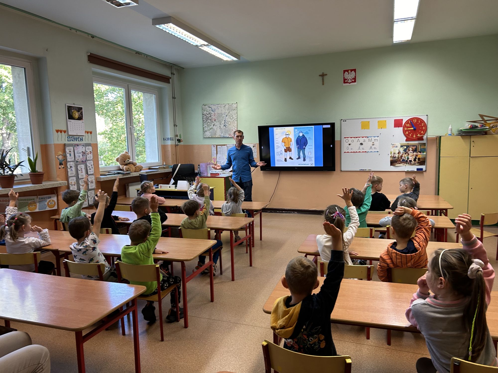 Przedszkolaki z Przedszkola Publicznego Nr 4 na zajeciach przyrodniczych w Szkole Podstawowej Nr 1