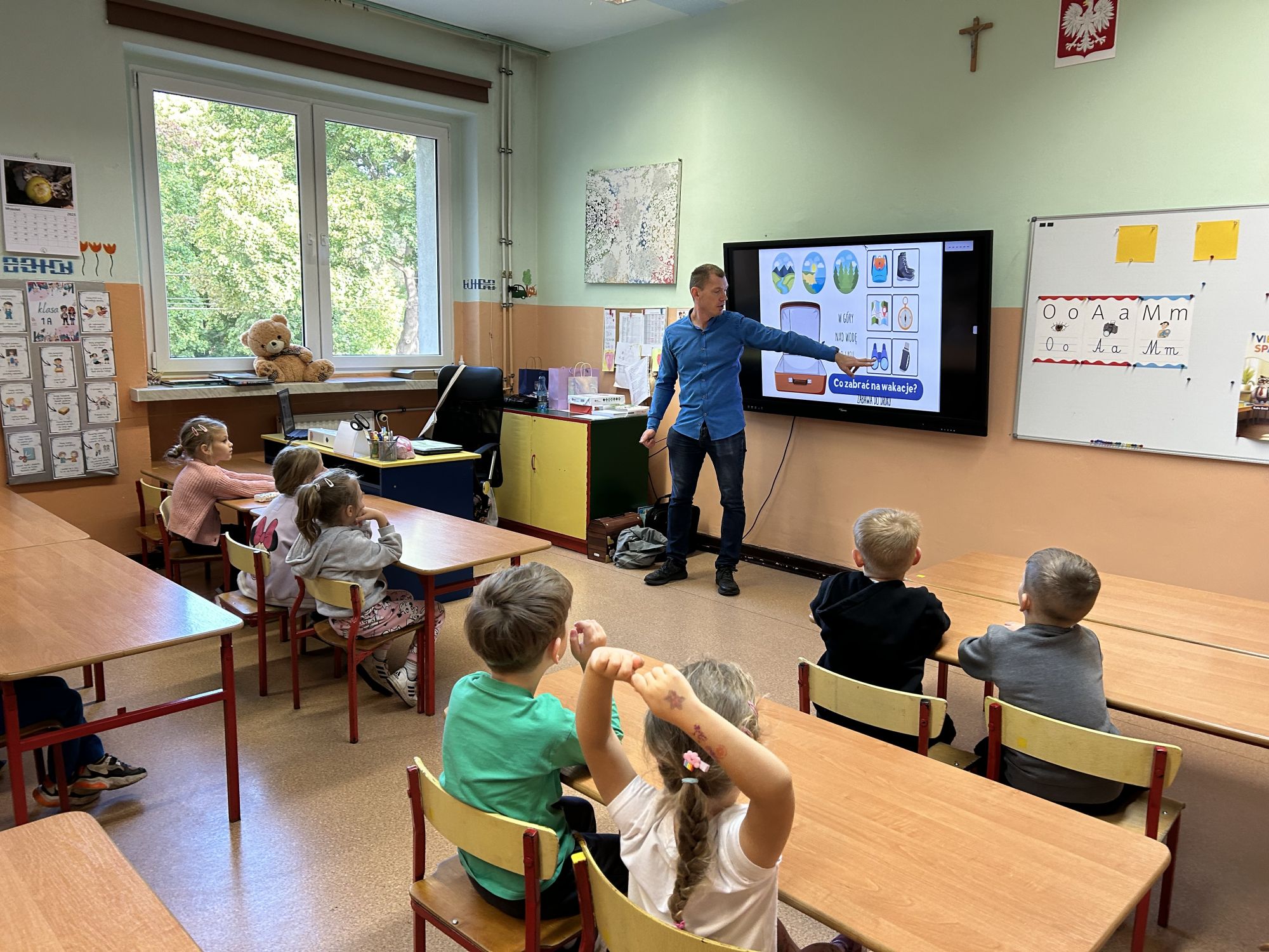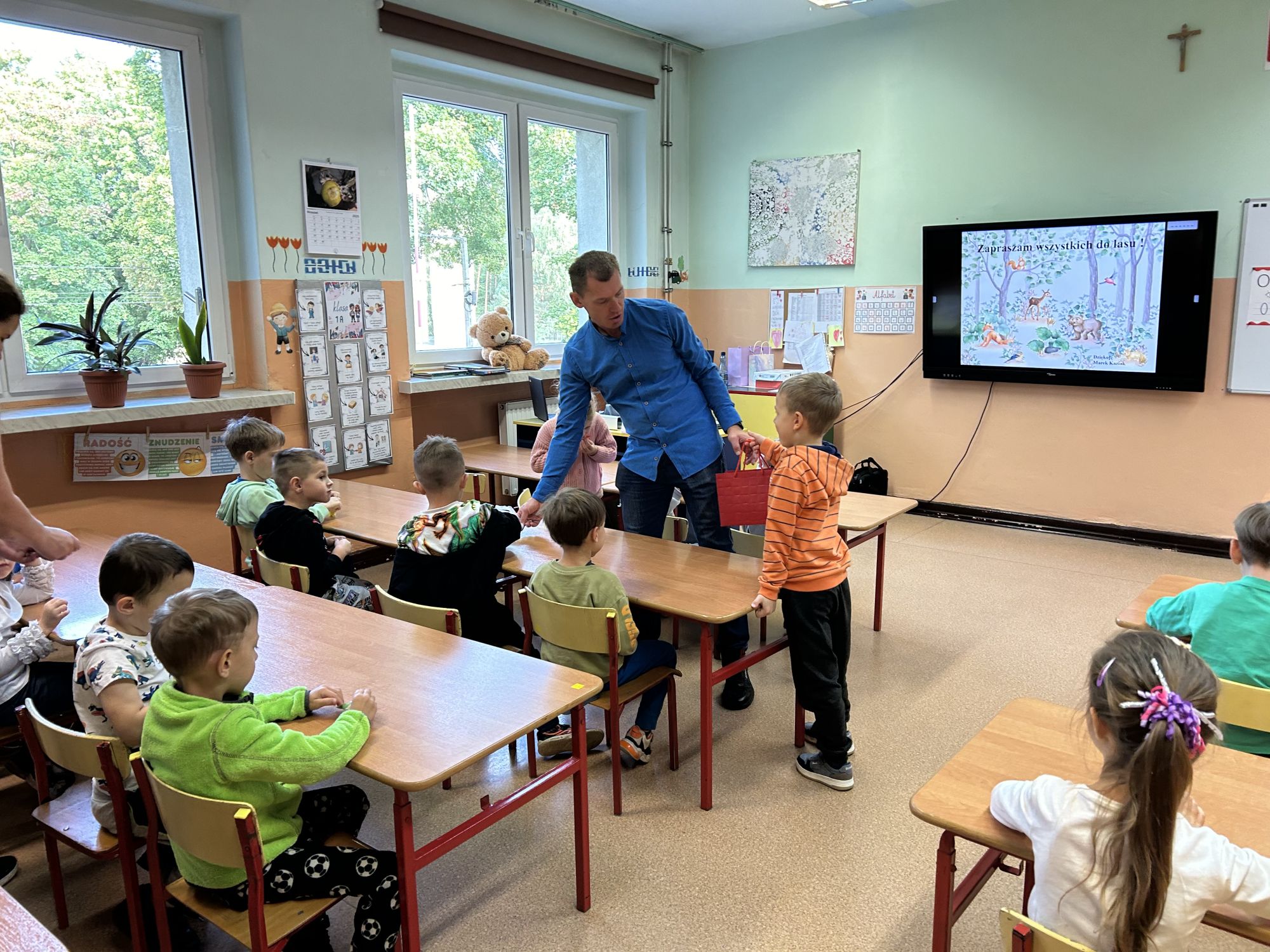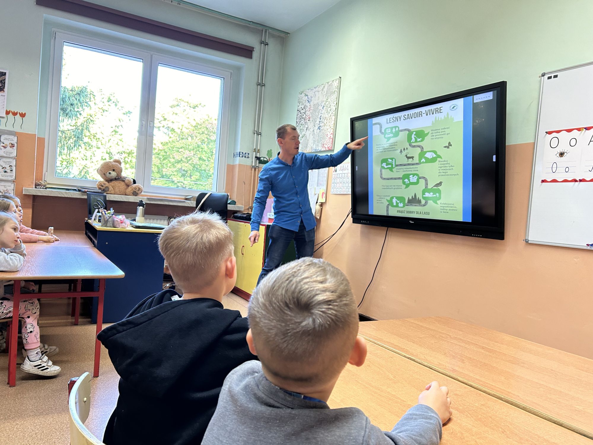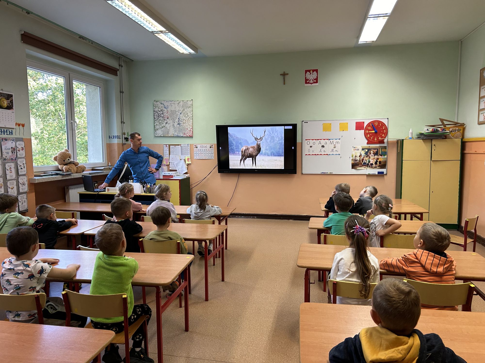 25 września dzieci z grupy IV odwiedziły pobliską szkołę podstawową, gdzie wzięły udział w wyjątkowych zajęciach przyrodniczych pt. „Wycieczka do lasu”. Zajęcia poprowadził nauczyciel przyrody, Pan Marek Kaziak.