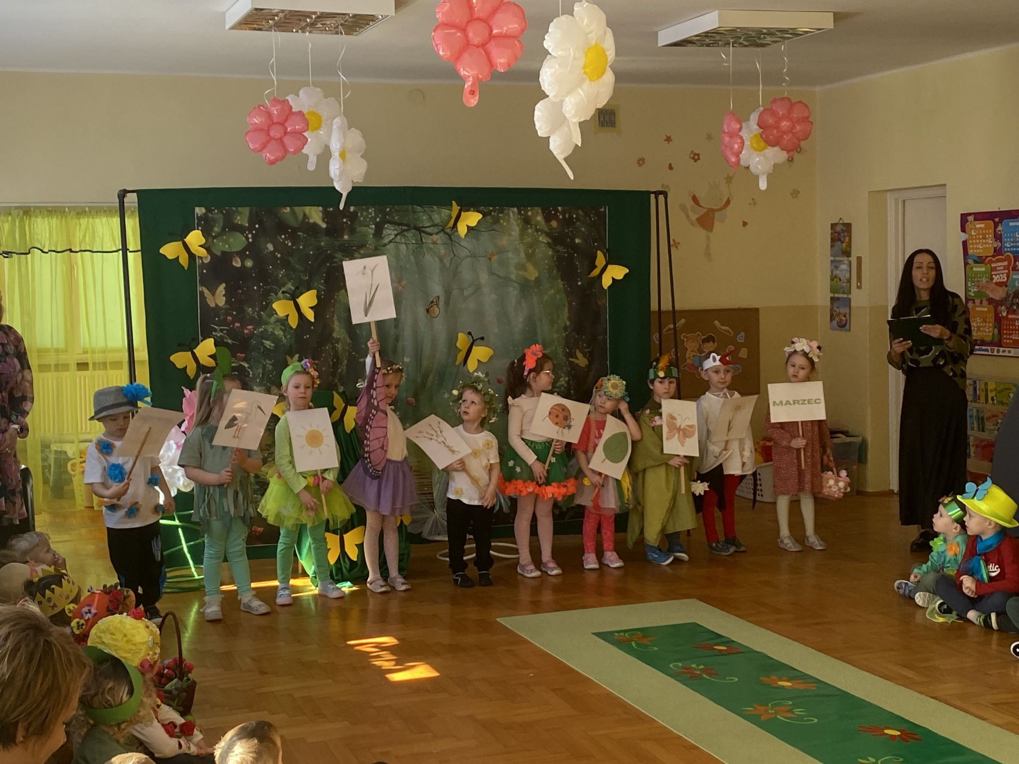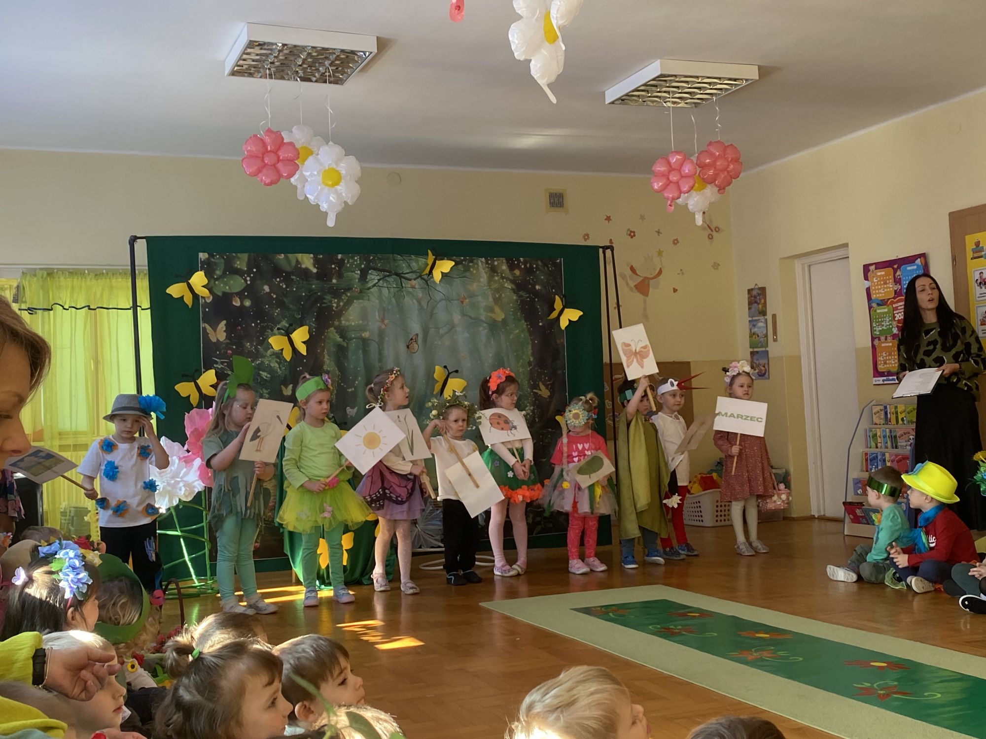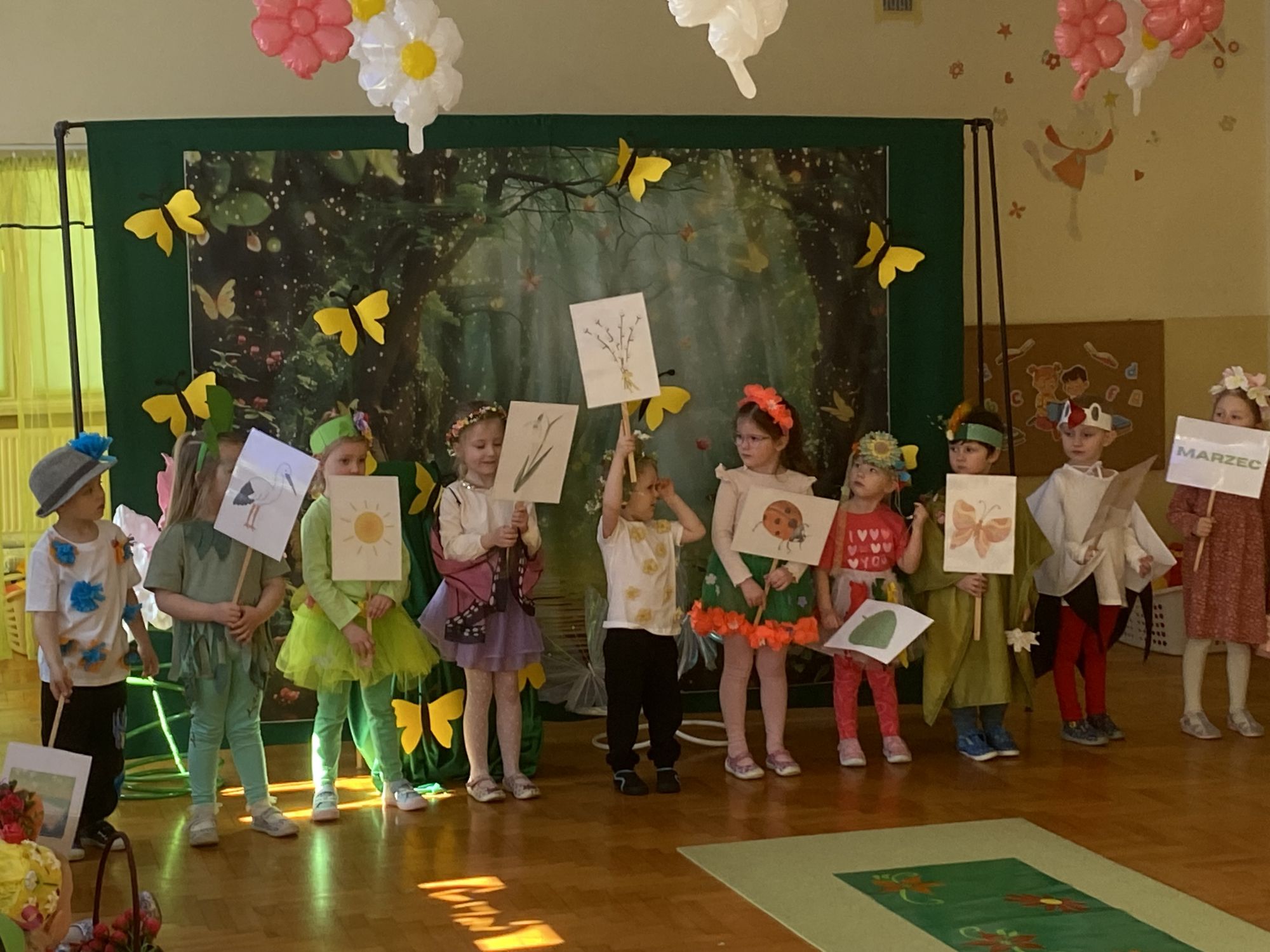 18 marca w naszym przedszkolu, jak co roku, radośnie powitaliśmy nadejście wiosny. Tego dnia cała społeczność przedszkolna zebrała się w sali maluchów, gdzie rozpoczęliśmy uroczystość od krótkiej pogadanki na temat oznak wiosny oraz zmian zachodzących w przyrodzie.