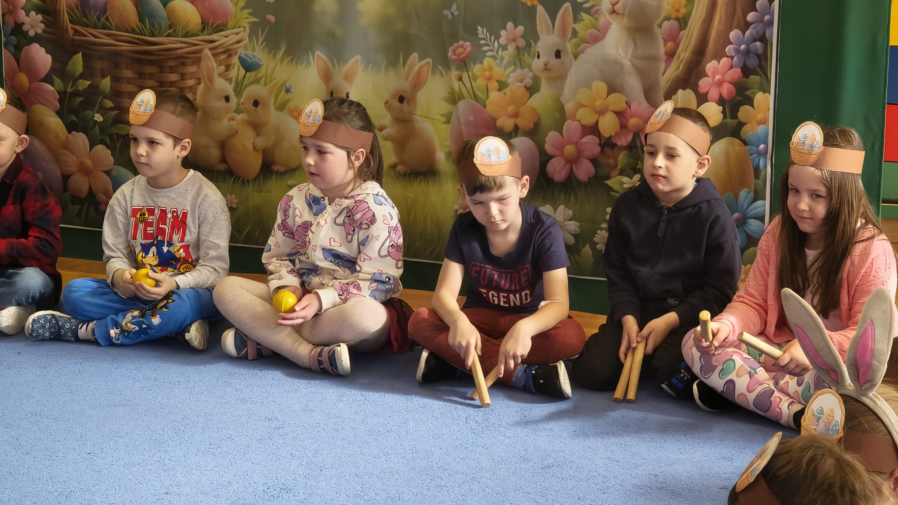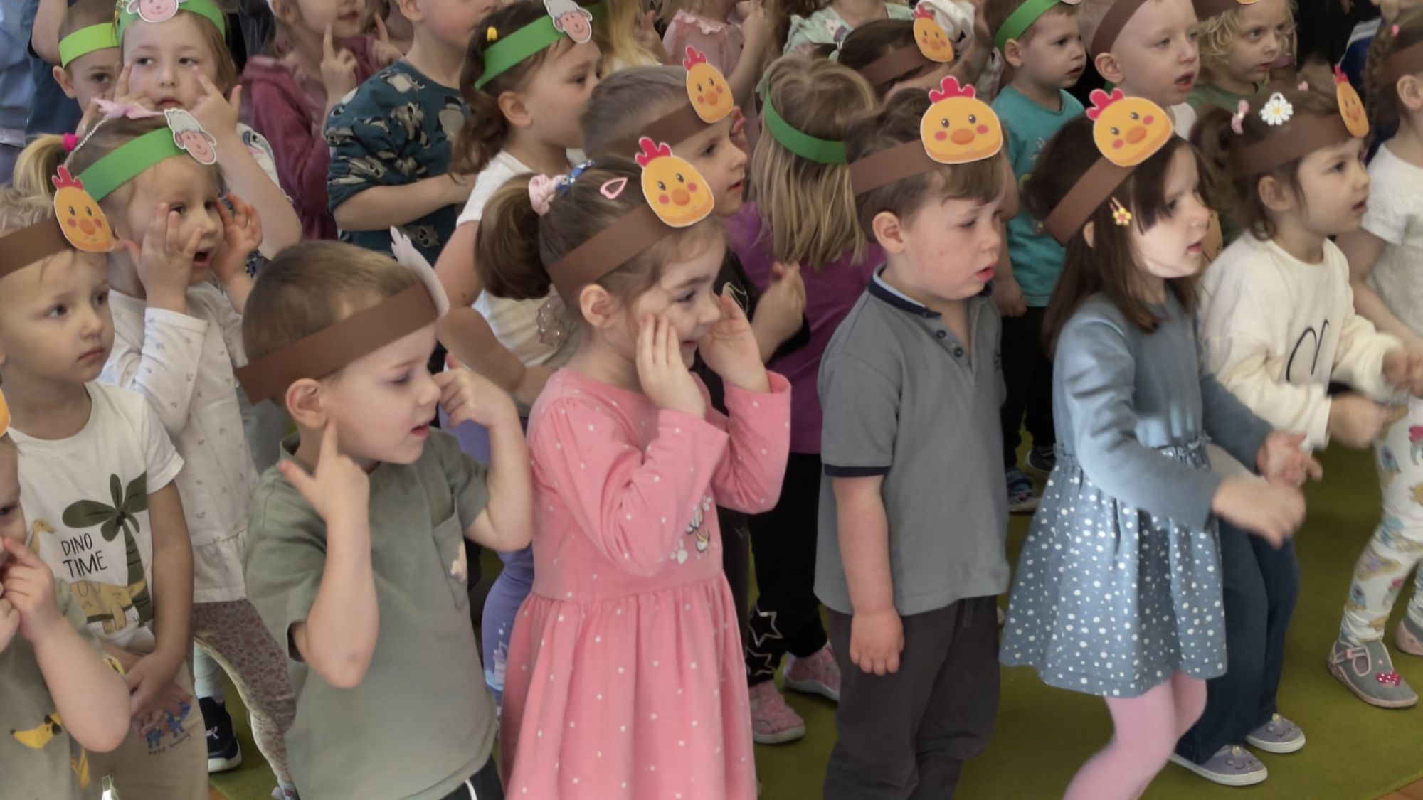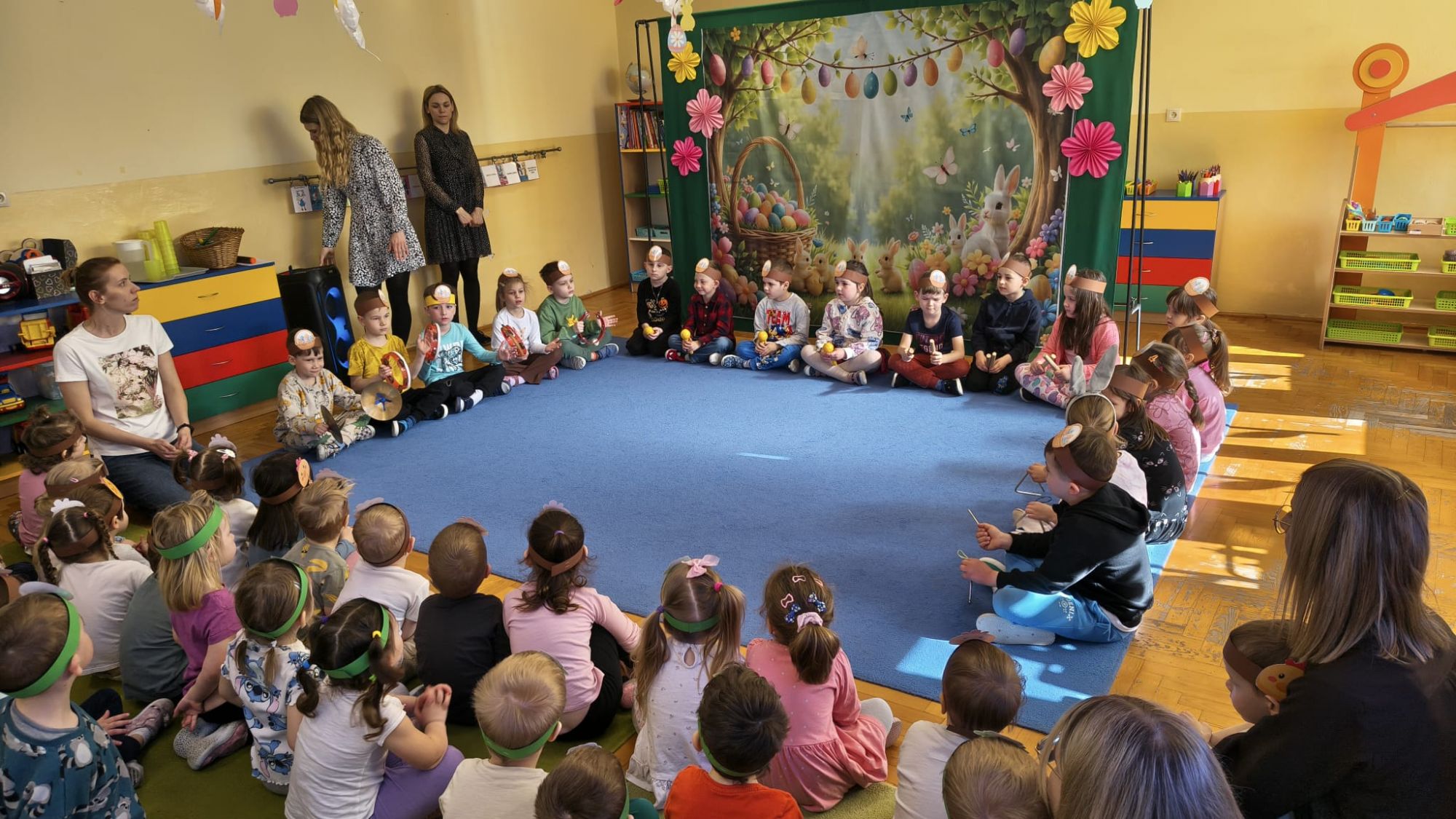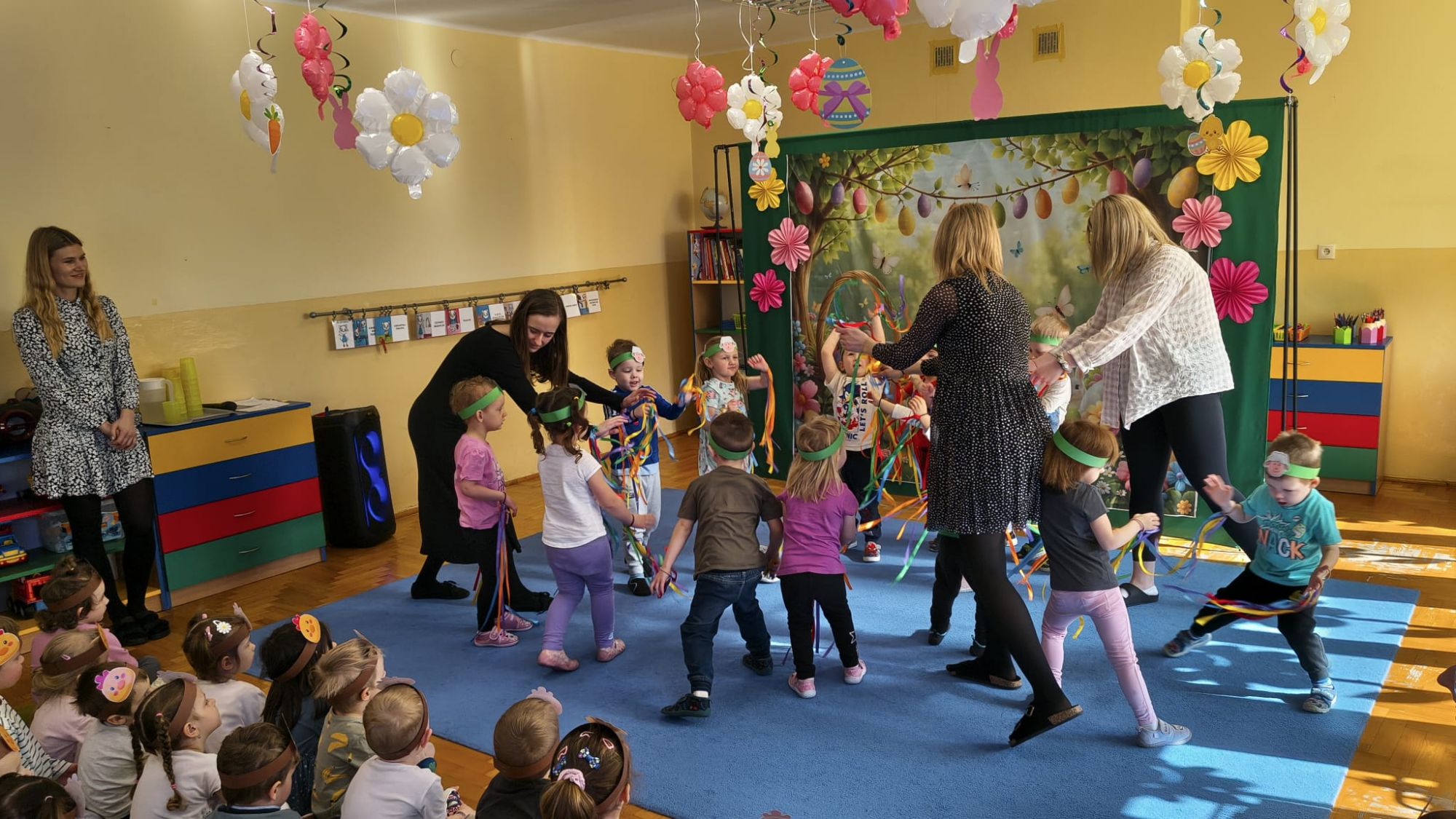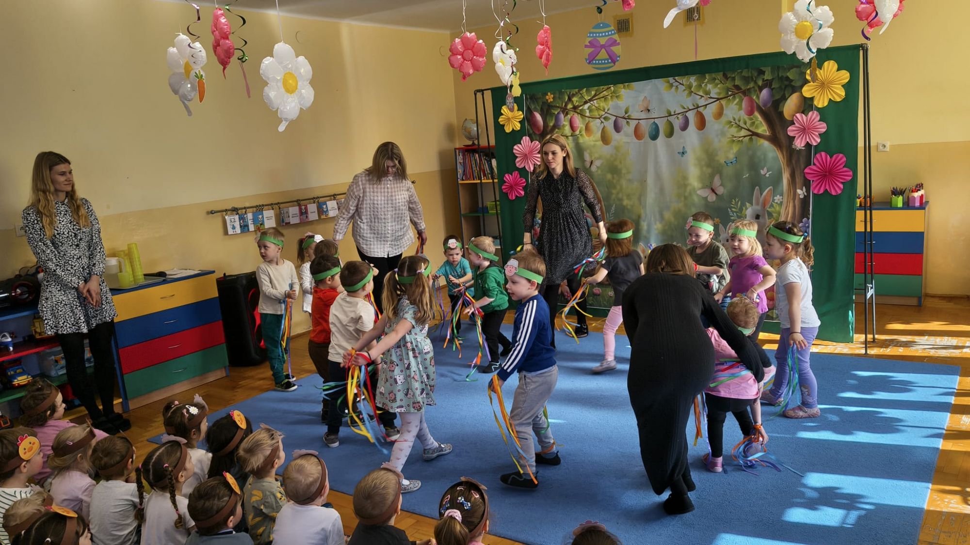 1 kwietnia w Przedszkolu Publicznym Nr 4 w Ozimku odbyło się radosne szukanie Zajączka Wielkanocnego. Na początku każda grupa zaprezentowała się – dzieci śpiewały wielkanocne piosenki, grały na instrumentach oraz tańczyły. Wszystkie grupy miały przygotowane opaski z motywem wielkanocnym, co dodawało uroku całemu wydarzeniu.