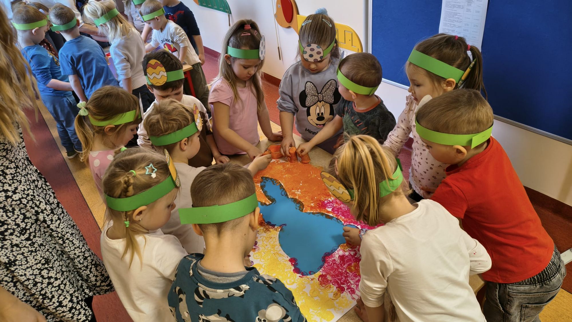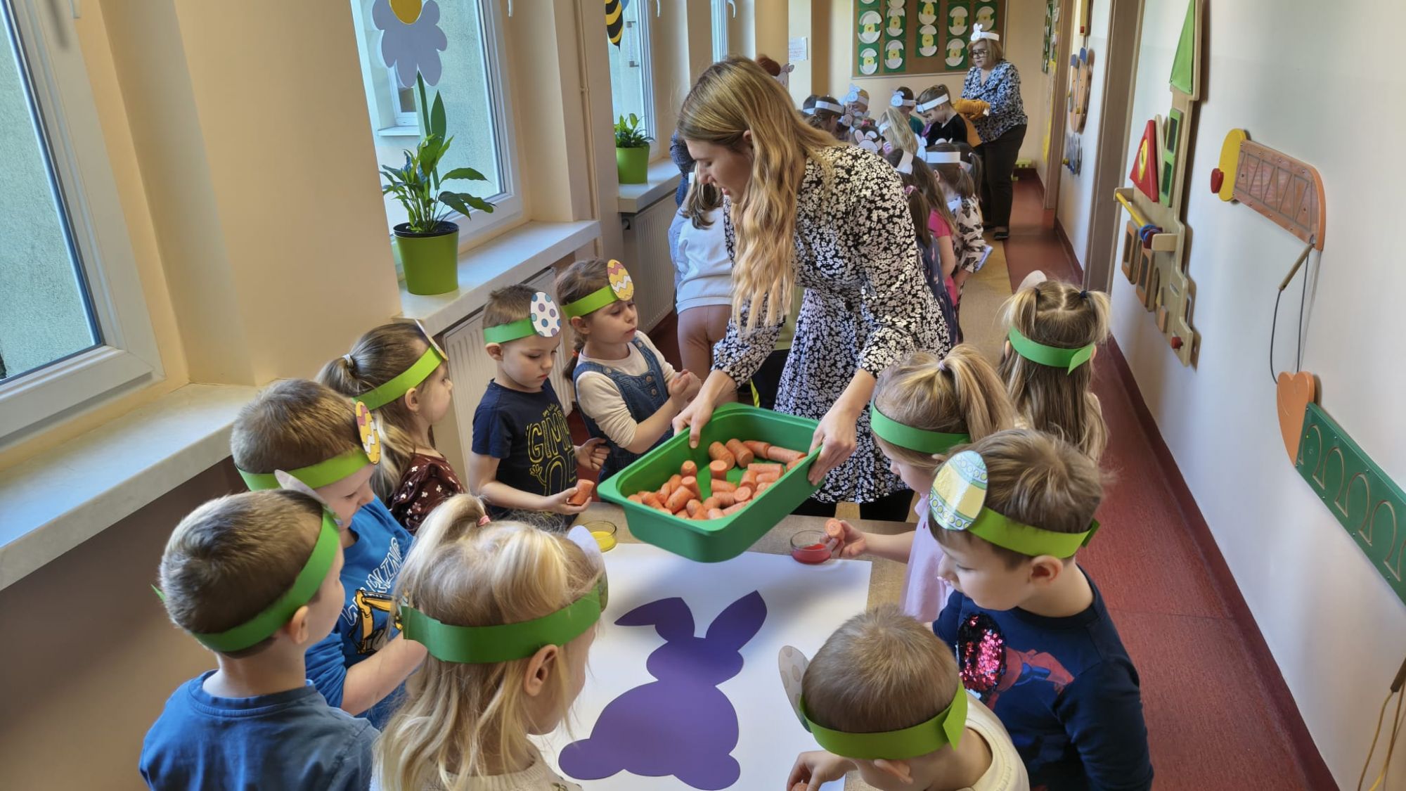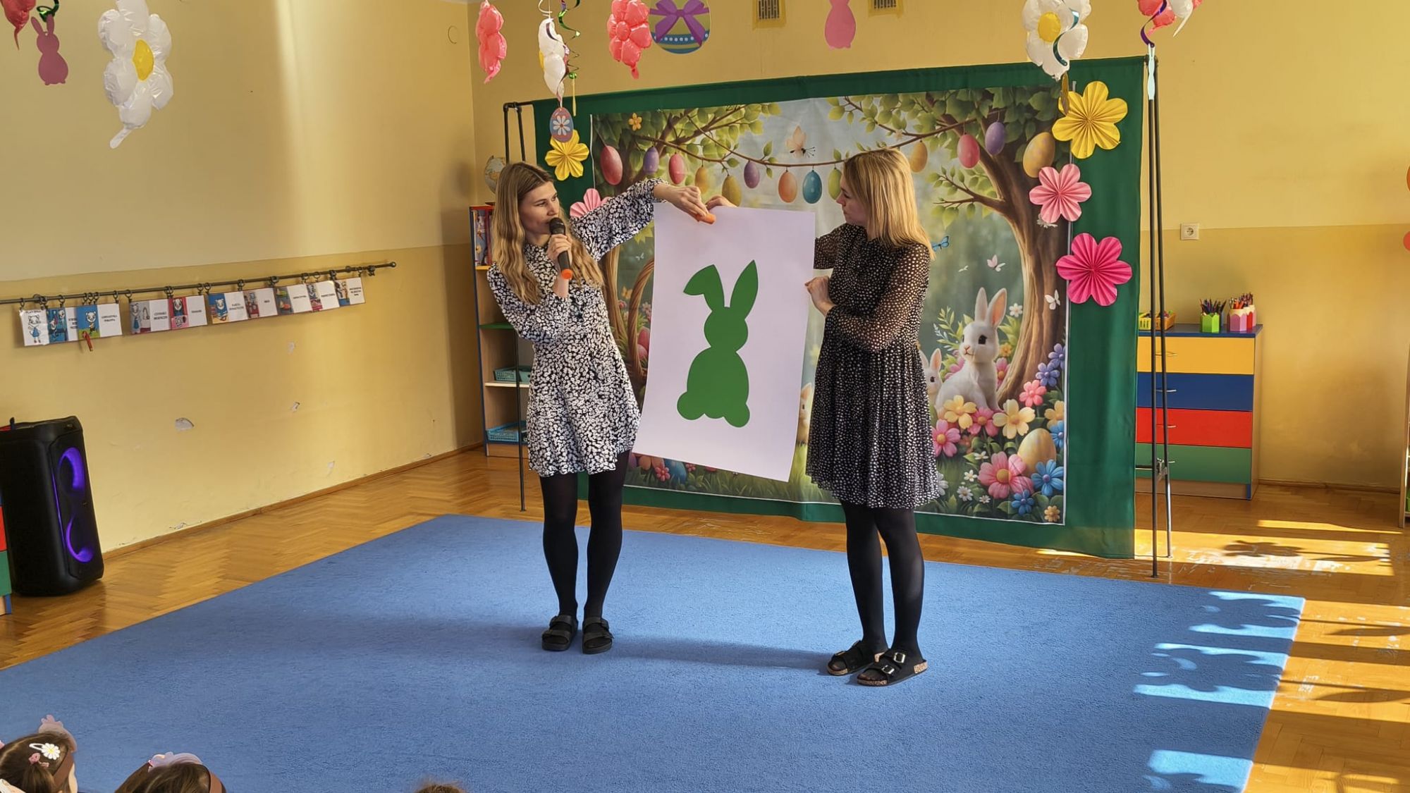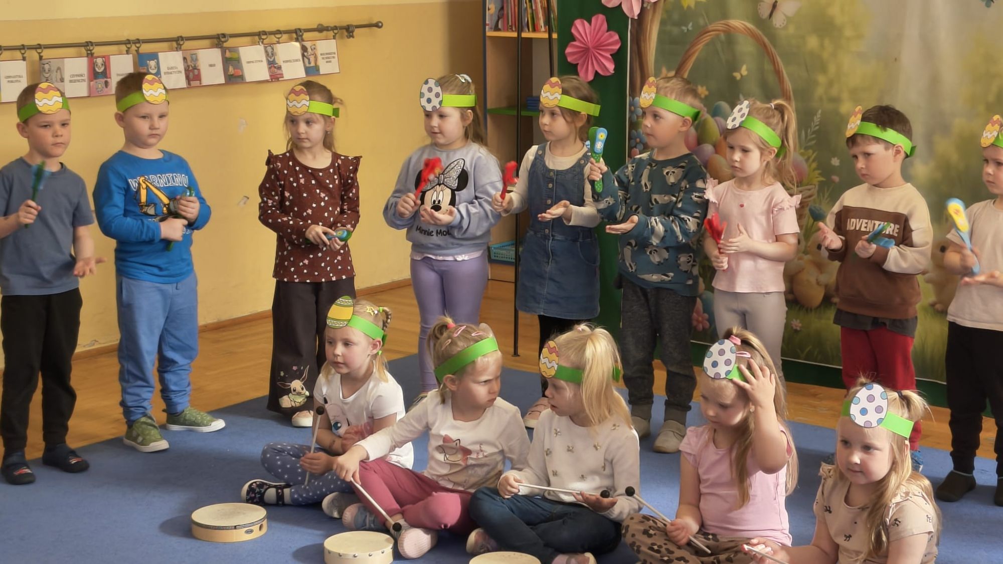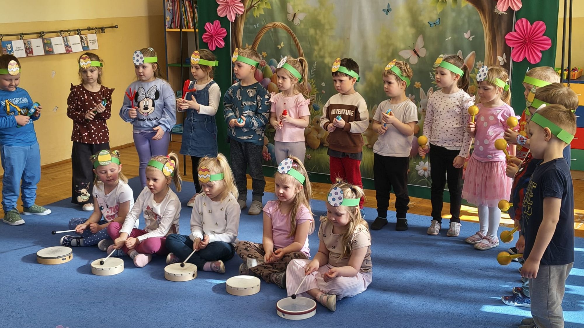 1 kwietnia w Przedszkolu Publicznym Nr 4 w Ozimku odbyło się radosne szukanie Zajączka Wielkanocnego. Na początku każda grupa zaprezentowała się – dzieci śpiewały wielkanocne piosenki, grały na instrumentach oraz tańczyły. Wszystkie grupy miały przygotowane opaski z motywem wielkanocnym, co dodawało uroku całemu wydarzeniu.