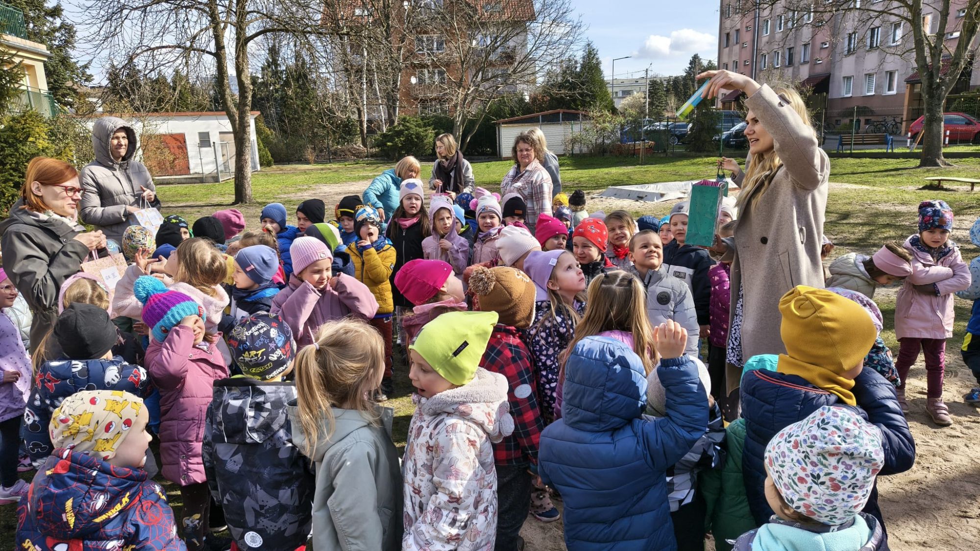 Na zakończenie wszyscy udali się na plac zabaw, gdzie odbyło się poszukiwanie słodyczy ukrytych przez Zajączka. To był pełen uśmiechu i zabawy dzień, który na długo pozostanie w pamięci dzieci.