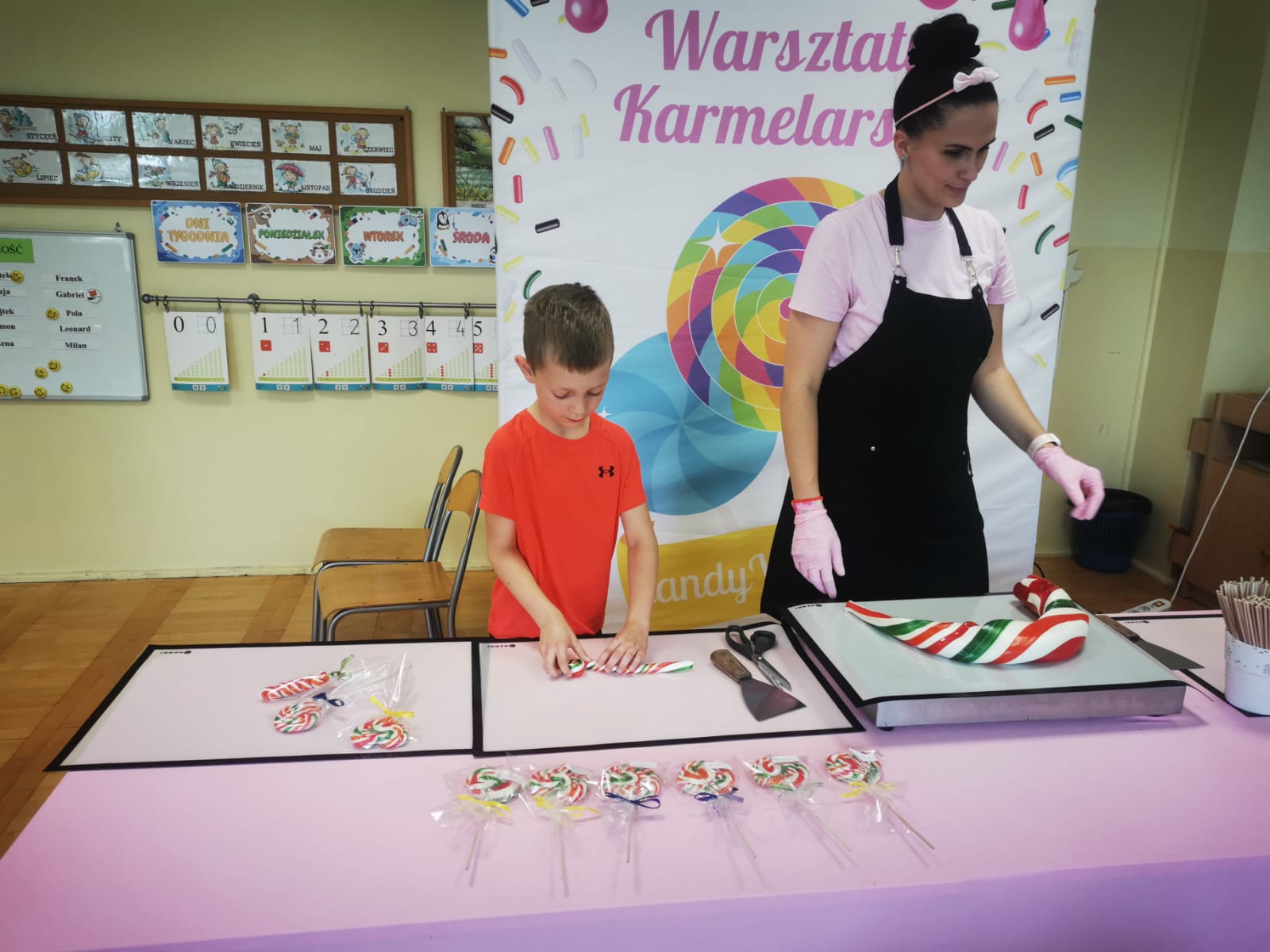 Najwięcej emocji wzbudziła oczywiście część praktyczna – każde dziecko mogło własnoręcznie stworzyć lizaka w wybranym przez siebie kształcie: świderka, kółeczka lub serduszka. Mimo różnych wzorów, wszystkie lizaki łączył jeden – truskawkowy – smak i zapach, który unosił się w powietrzu.