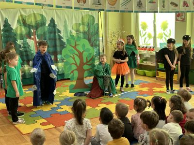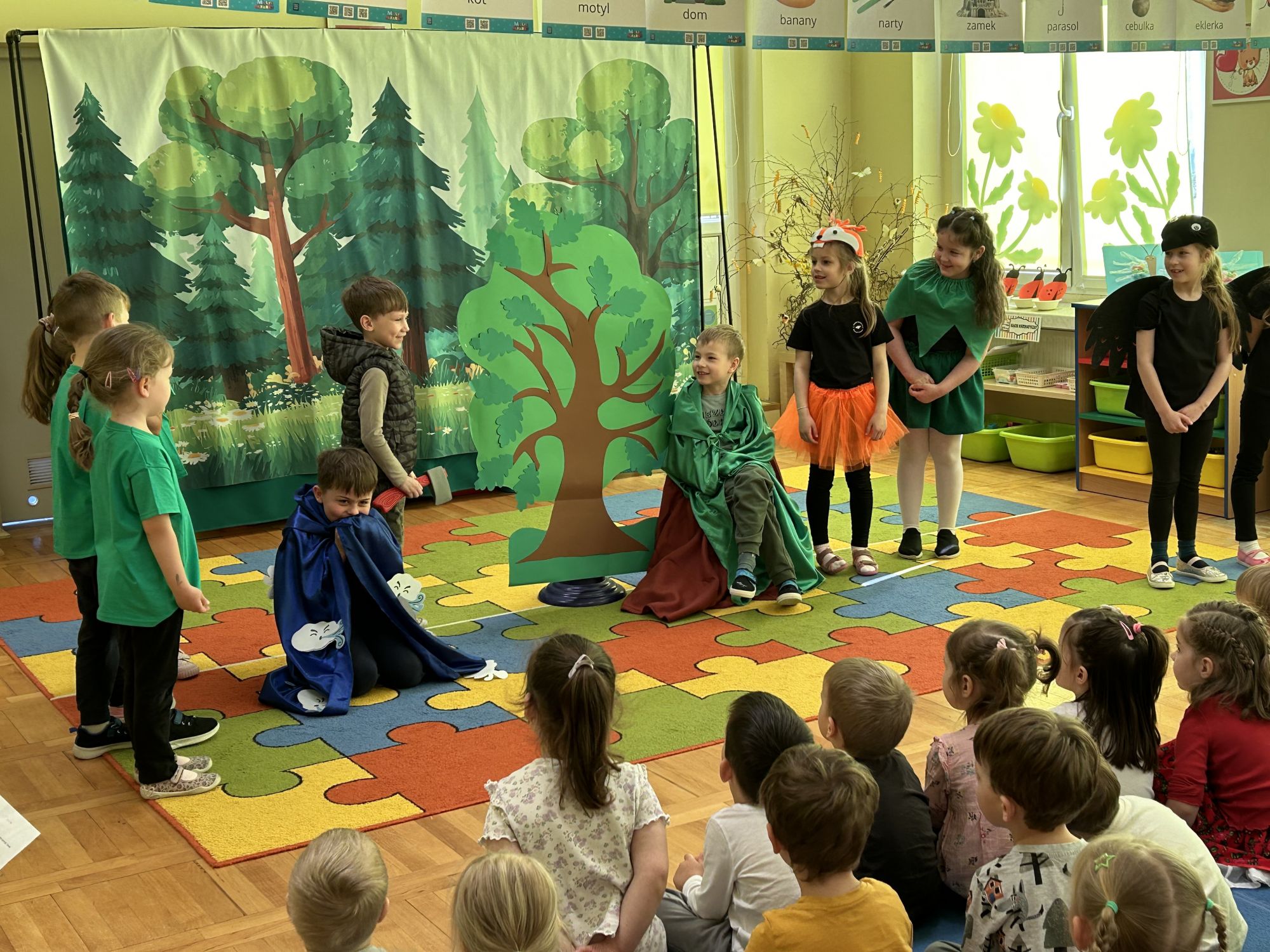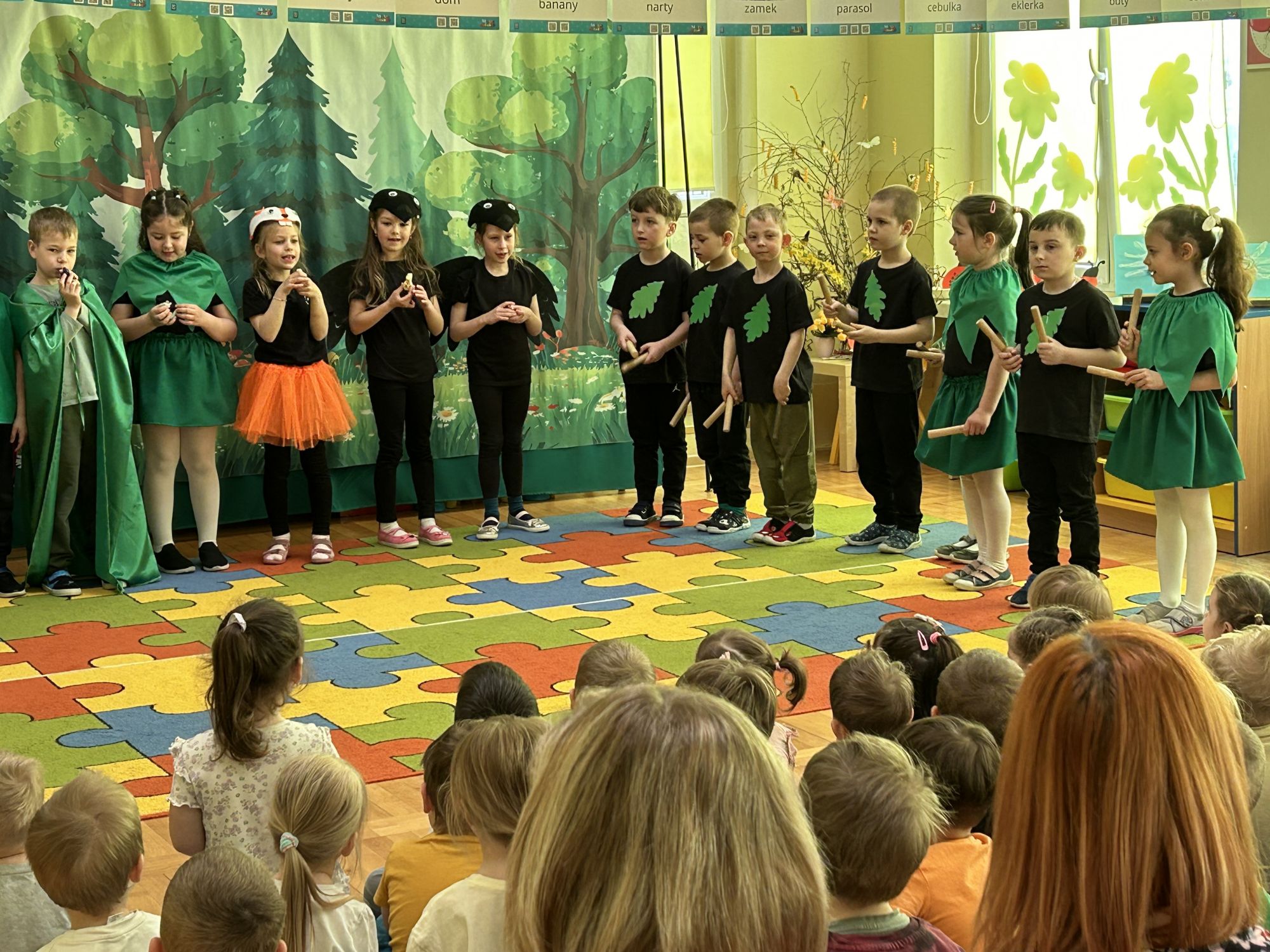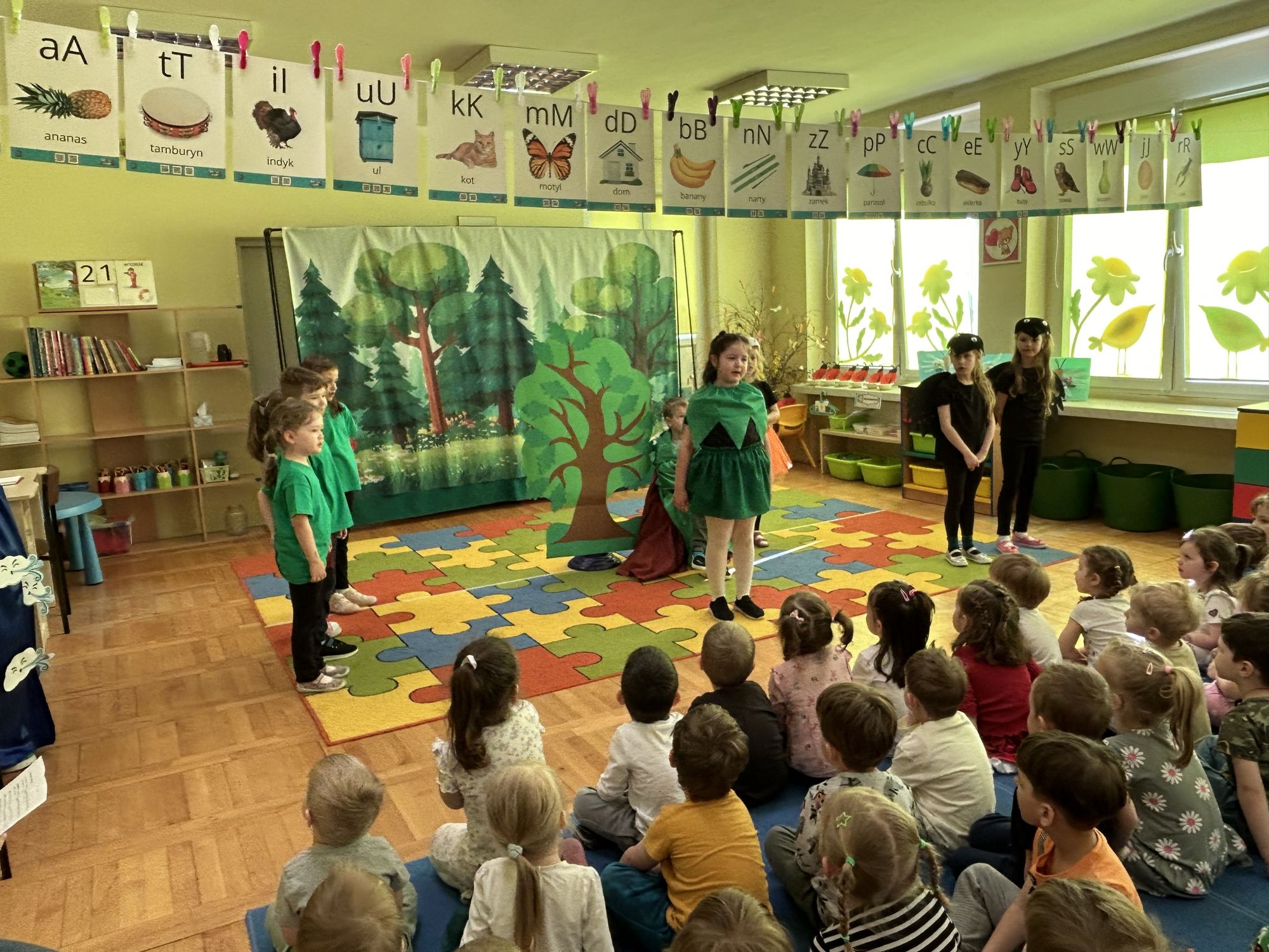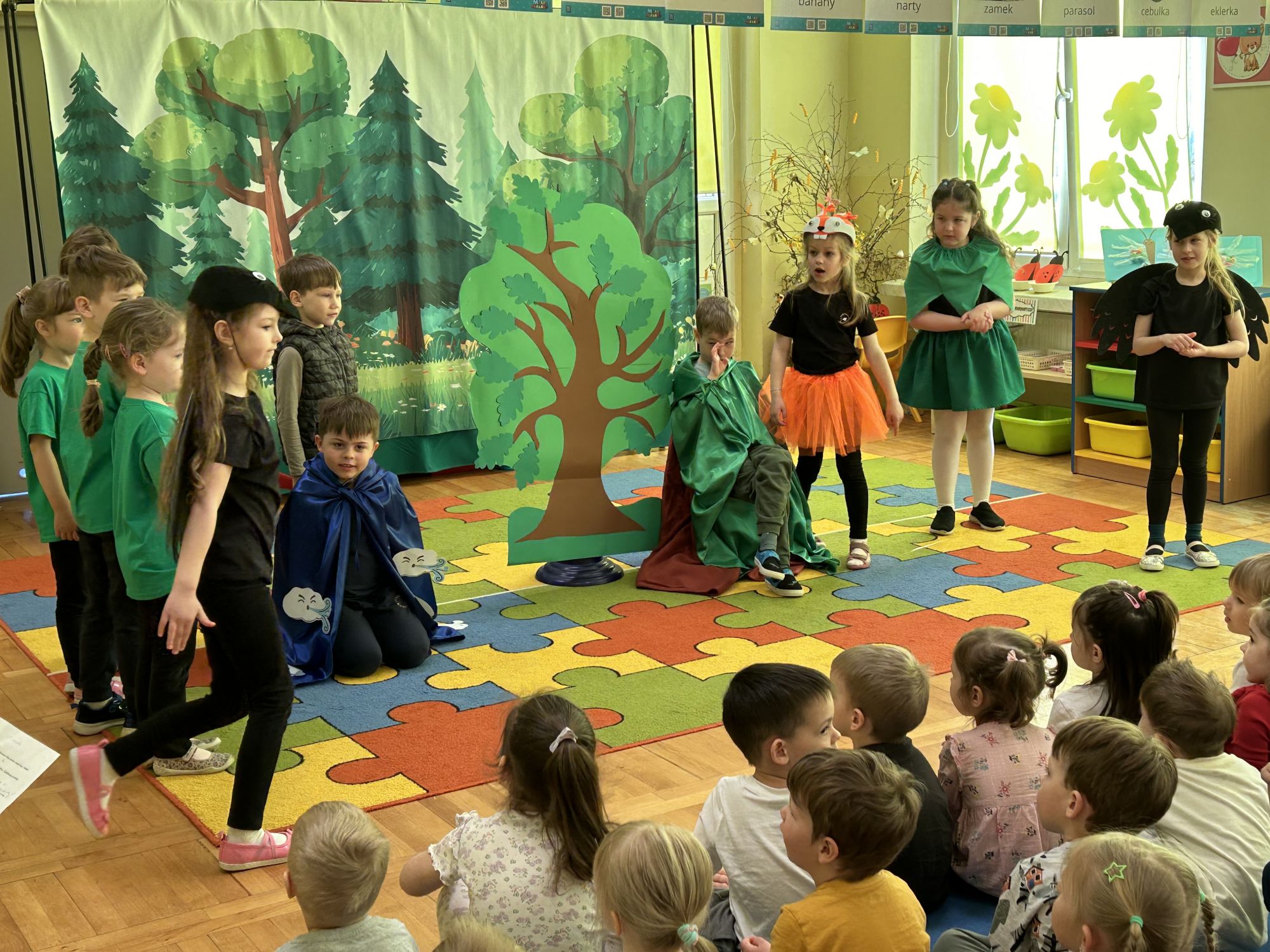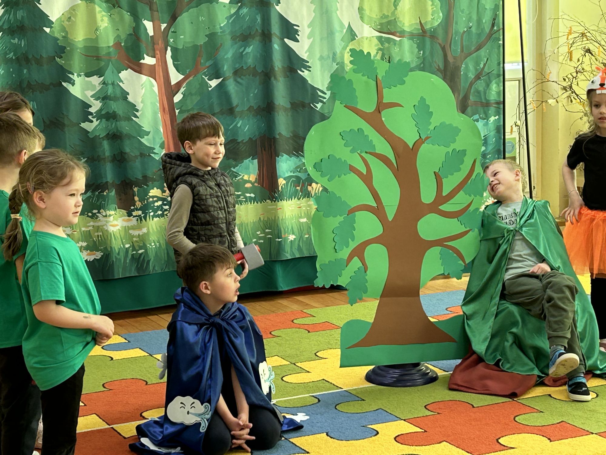 Dzięki tej uroczystości oraz przygotowanej inscenizacji dzieci mogły lepiej zrozumieć, jak ogromne znaczenie mają drzewa w naszym życiu – jako źródło tlenu, schronienie dla zwierząt i ważny element przyrody. Tego typu doświadczenia pokazują, jak poprzez sztukę, ruch i wspólne działanie można skutecznie rozwijać wrażliwość ekologiczną oraz budować szacunek do natury już od najmłodszych lat.
