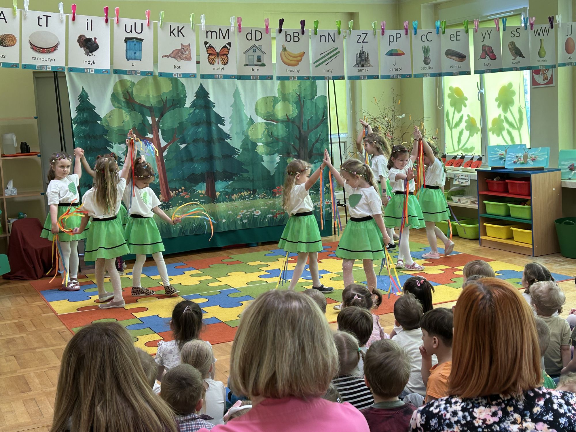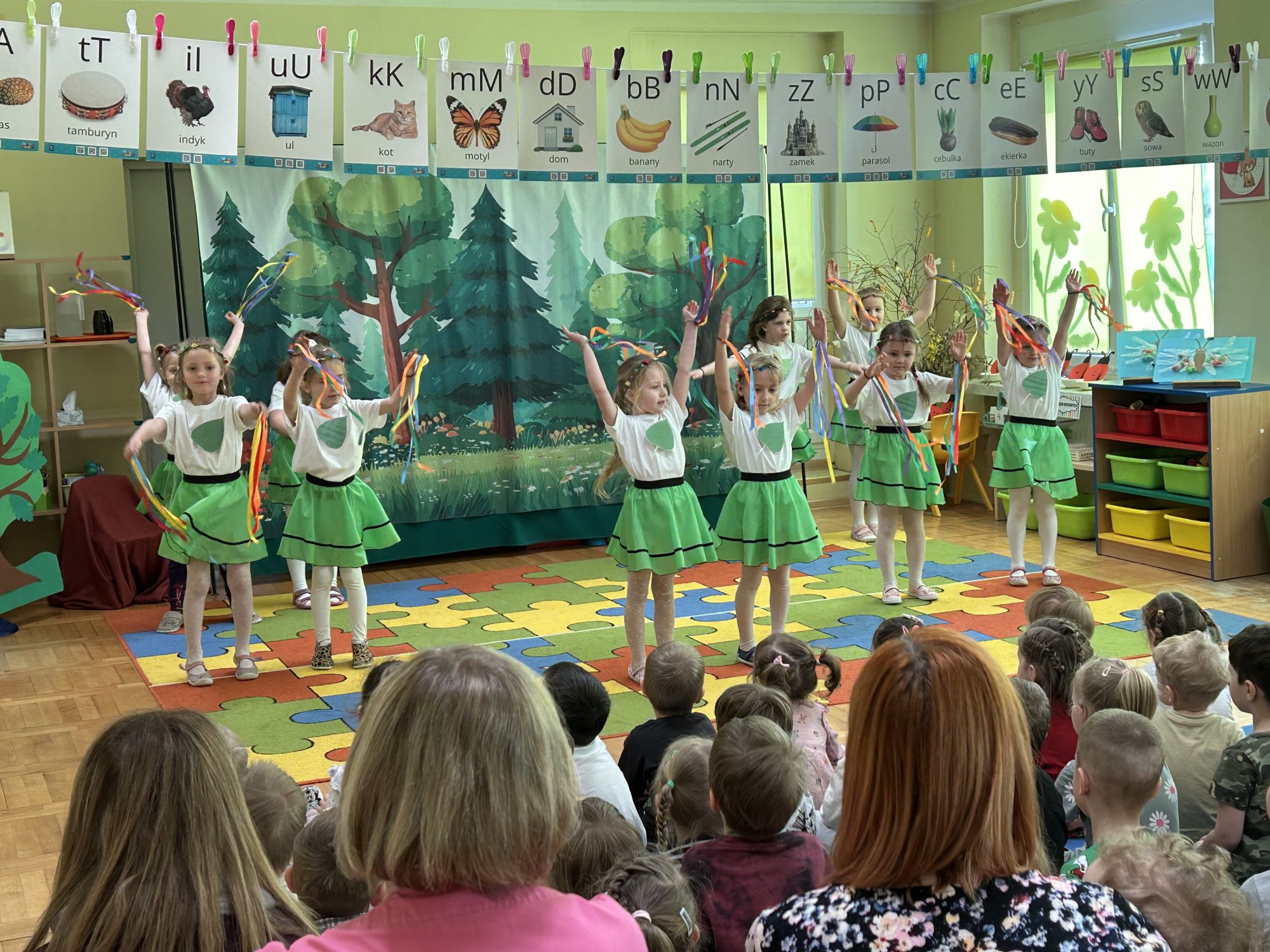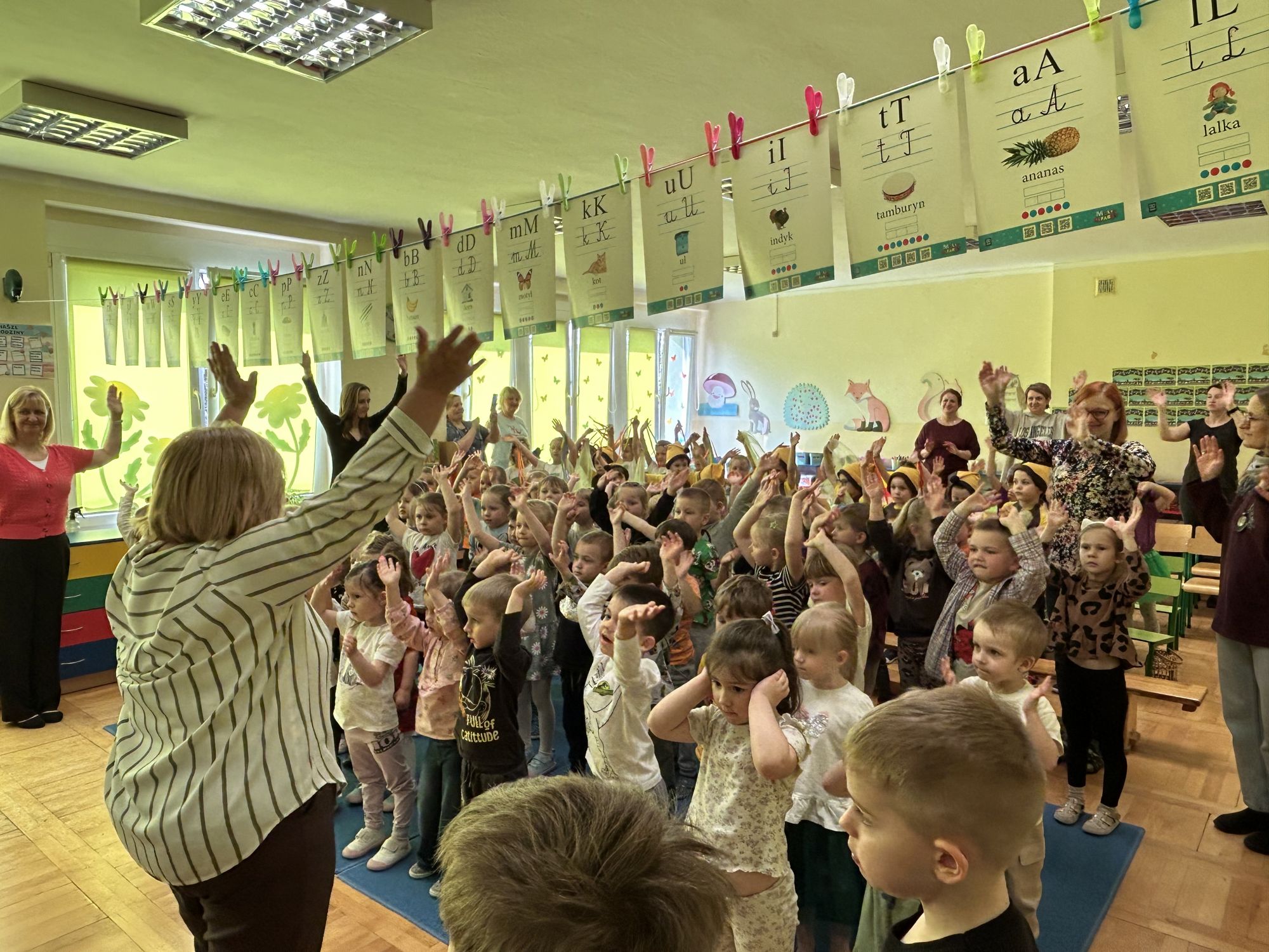 Finał uroczystości wybrzmiał radośnie i energicznie dzięki „leśnej tarantelli”, do której dzieci nie tylko zagrały, ale również pięknie zaśpiewały. Ten żywiołowy akcent zachęcił wszystkich do wspólnej zabawy, dlatego na zakończenie jeszcze raz rozbrzmiała tarantella, a do tańca dołączyły wszystkie dzieci, tworząc wyjątkową atmosferę.